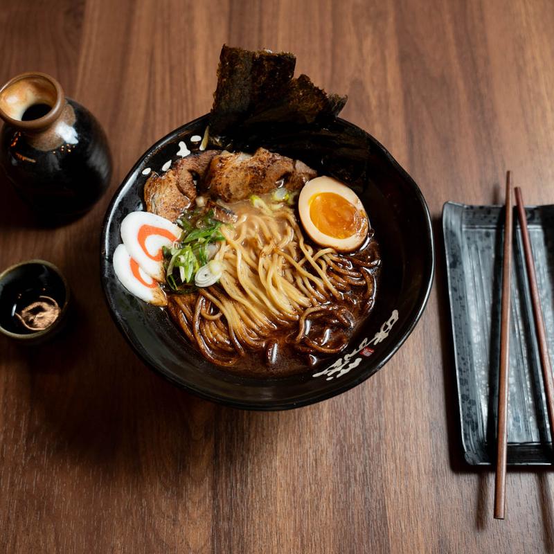 Spicy miso flavor, chashu, minced pork, naruo, butter, nori, green onion, and egg.